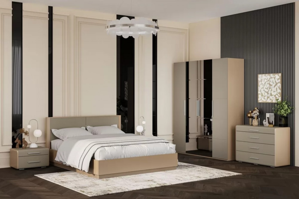 Вива Шкаф распашной ШР-4 2 зеркала Латте/Текстиль в Пангоды