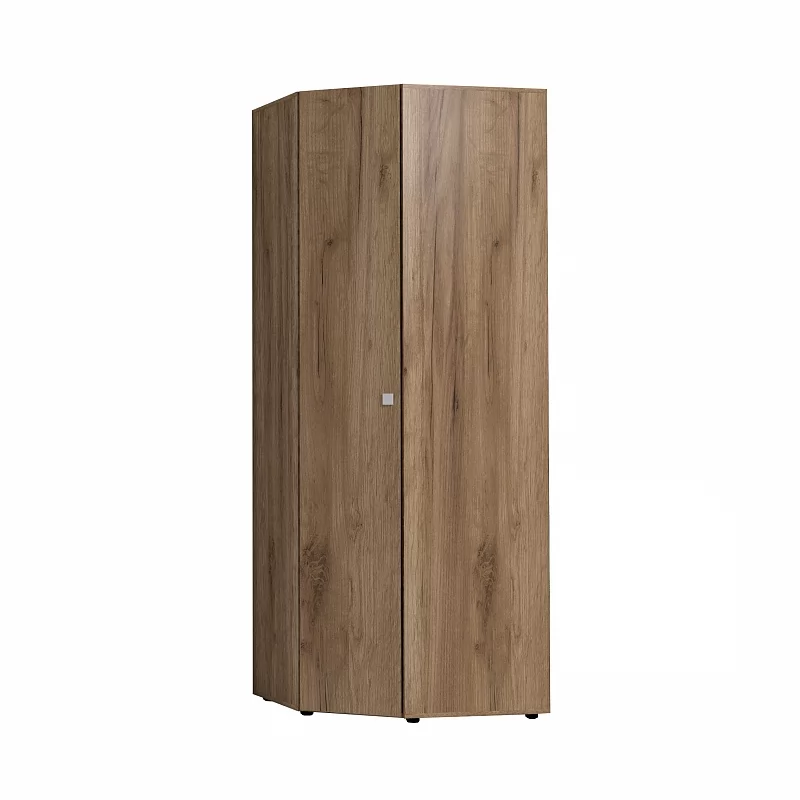 Отлично организовать пространство в маленькой спальне поможет угловой шкаф. Стационарная штанга длиной 814 мм и полноценный стеллаж для белья внутри способствуют аккуратной организации вещей. Гладкие фасады и натуральный декор шкафа привнесут в комнату особый уют и теплоту, а металлические ручки-скобки вместе с 2 мм кромкой ПВХ обеспечат высокую надежность изделия. Шкаф оснащен беспроводным светодиодным светильником, который включается при открывании двери. Это особенно удобно, если нужно найти в шкафу вещи, не потревожив близких. Легкая установка на магнитное крепление - не требует сверления, прокладывания провода, подключения к сети. Шкаф обязательно крепится к стене на подвесы, а компенсировать неровности пола можно, благодаря регулируемым опорам.