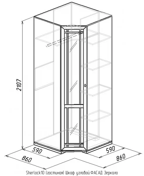 Шкаф угловой 10 с зеркалом Sherlock в Пангоды