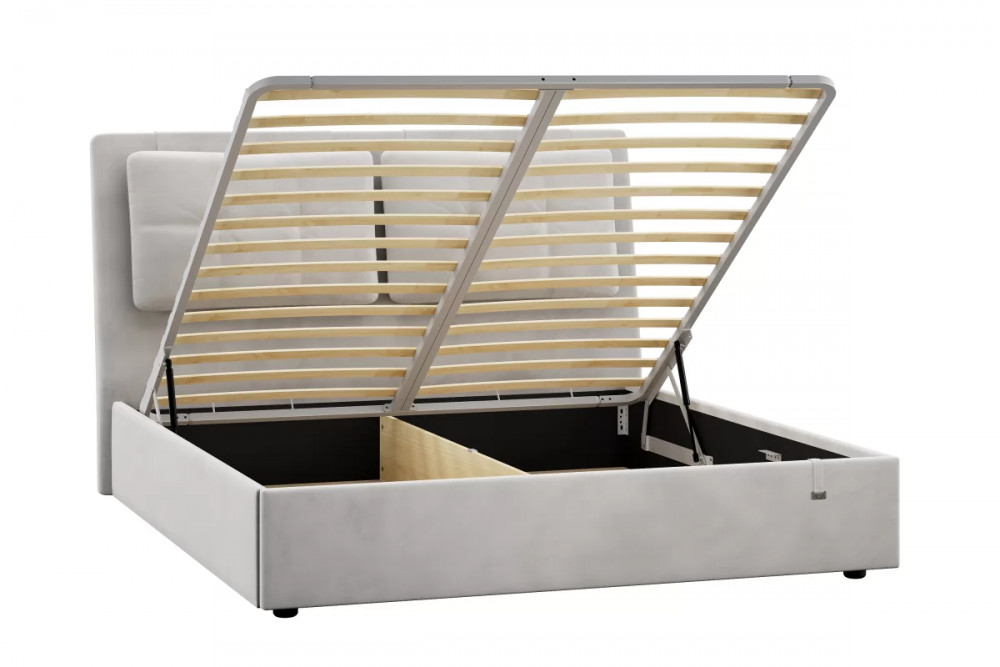 Подъемный механизм легок в управлении, а вместительный короб внутри кровати подойдет для хранения подушек, белья и других вещей.