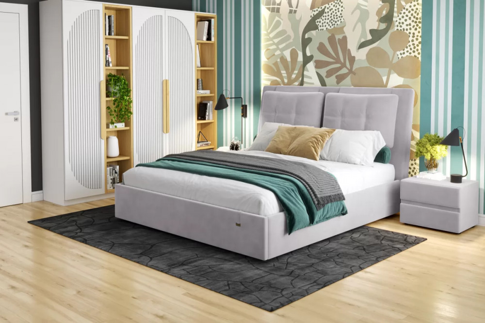 Подъемный механизм легок в управлении, а вместительный короб внутри кровати подойдет для хранения подушек, белья и других вещей.