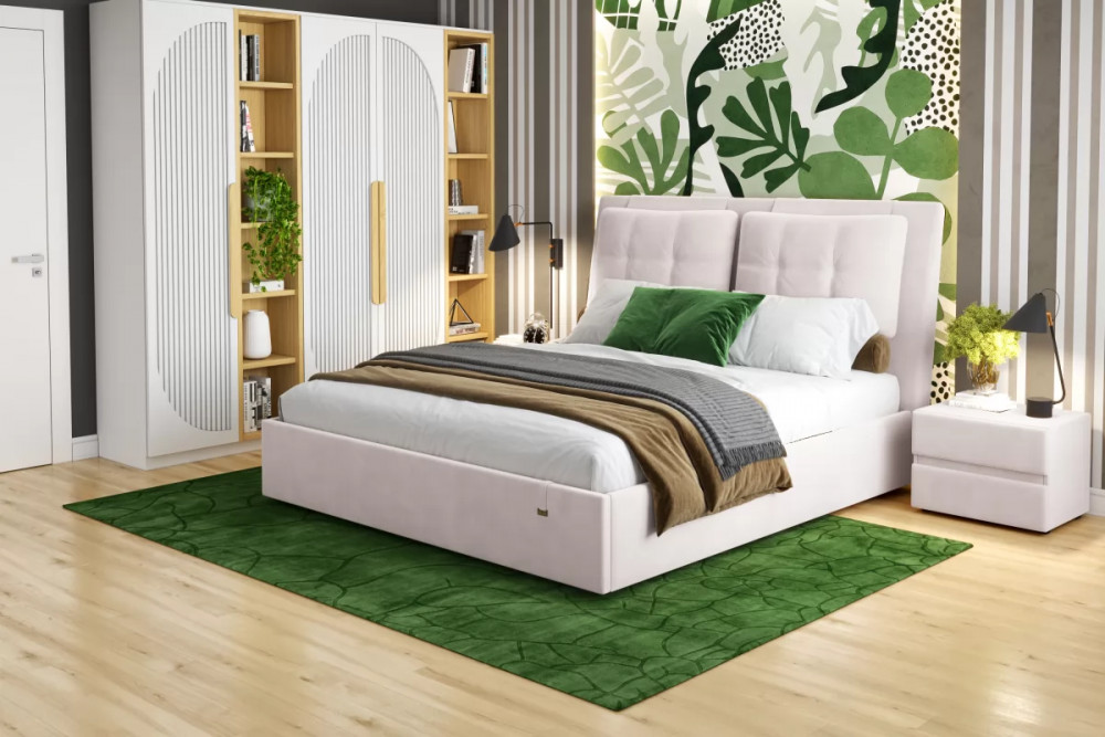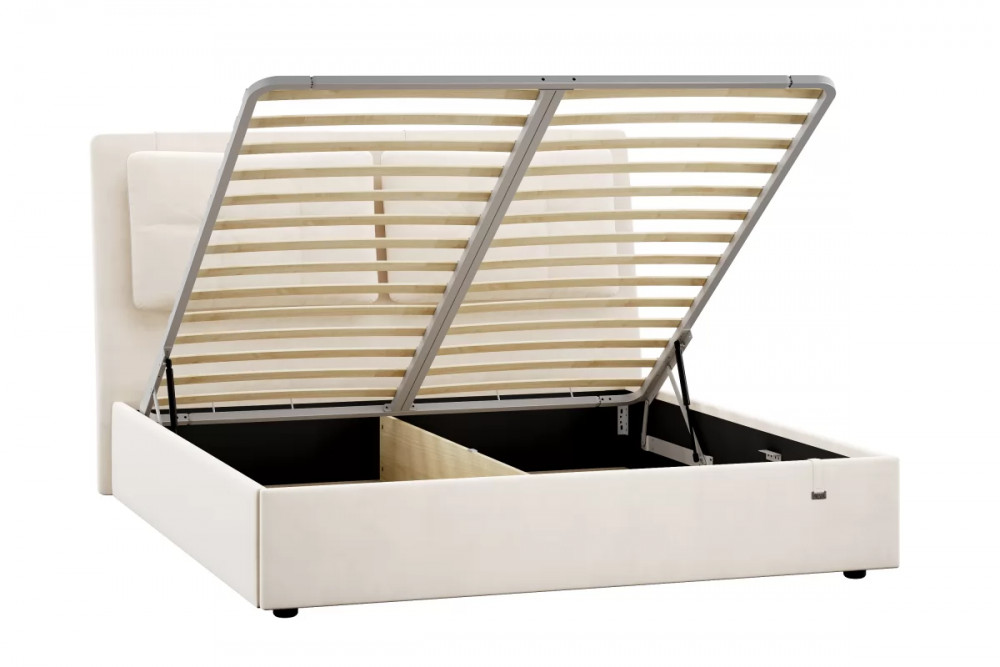 Подъемный механизм легок в управлении, а вместительный короб внутри кровати подойдет для хранения подушек, белья и других вещей.