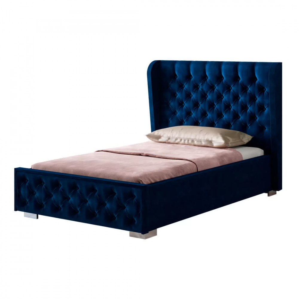 -высокое мягкое изголовье имеет декоративную стяжку с пуговицами, такой прием придает кровати элегантности.