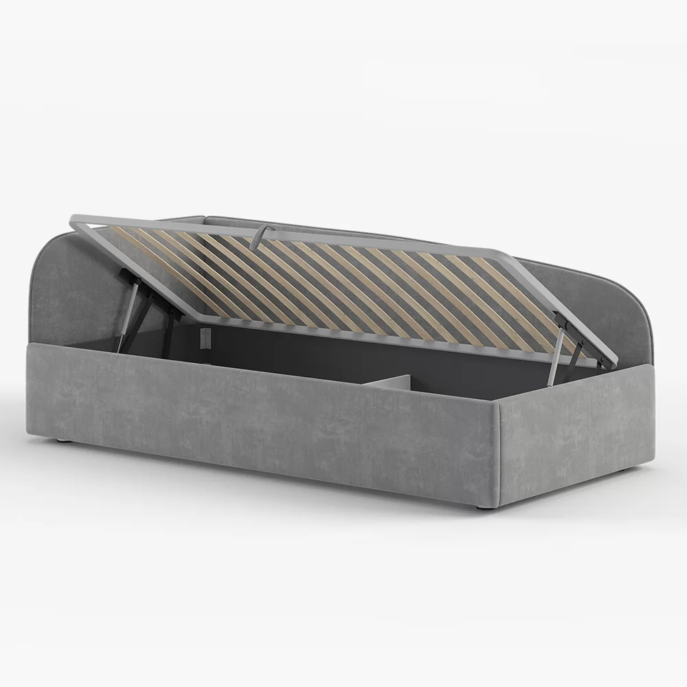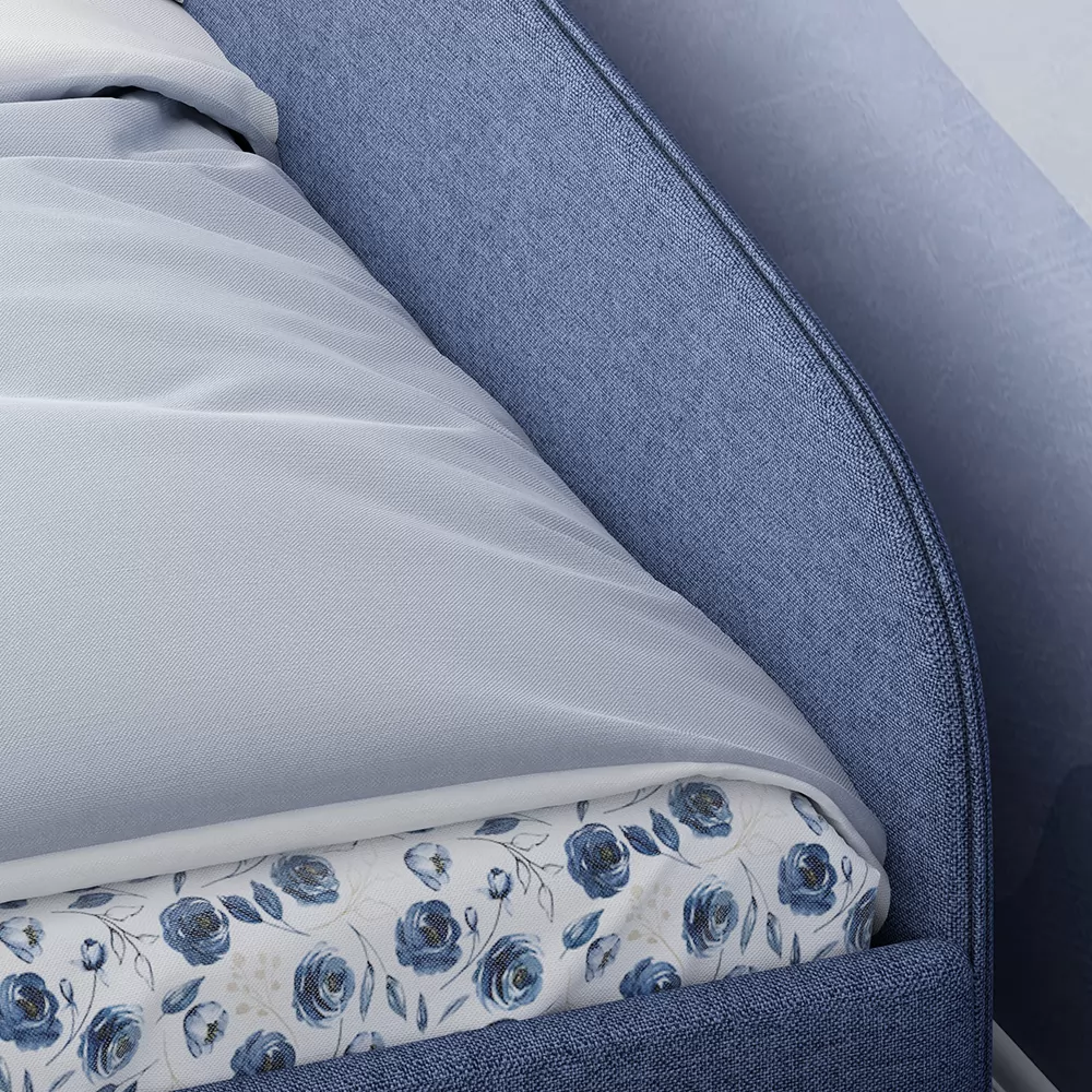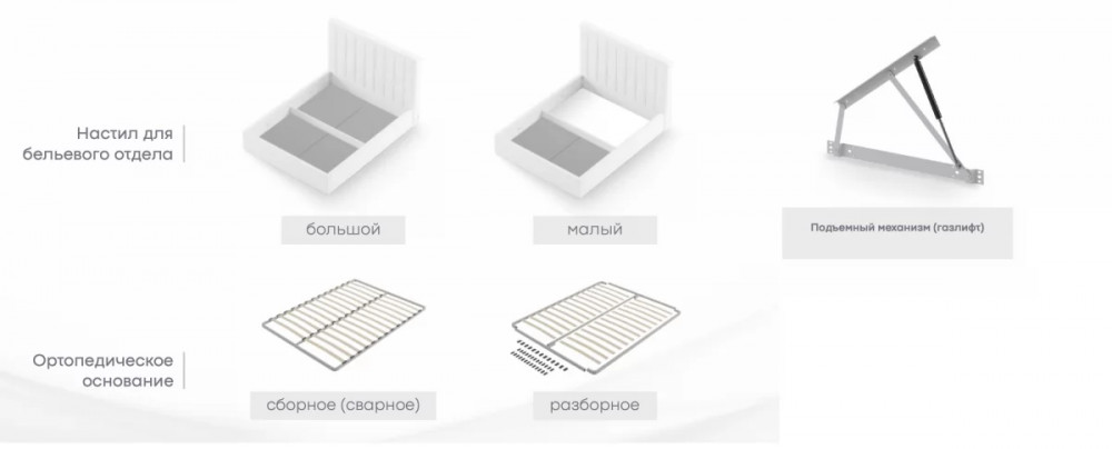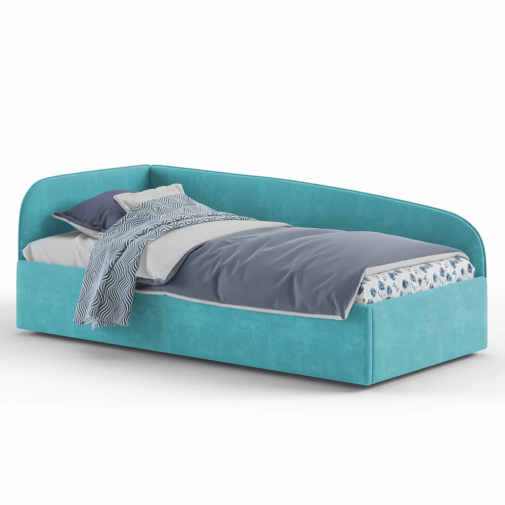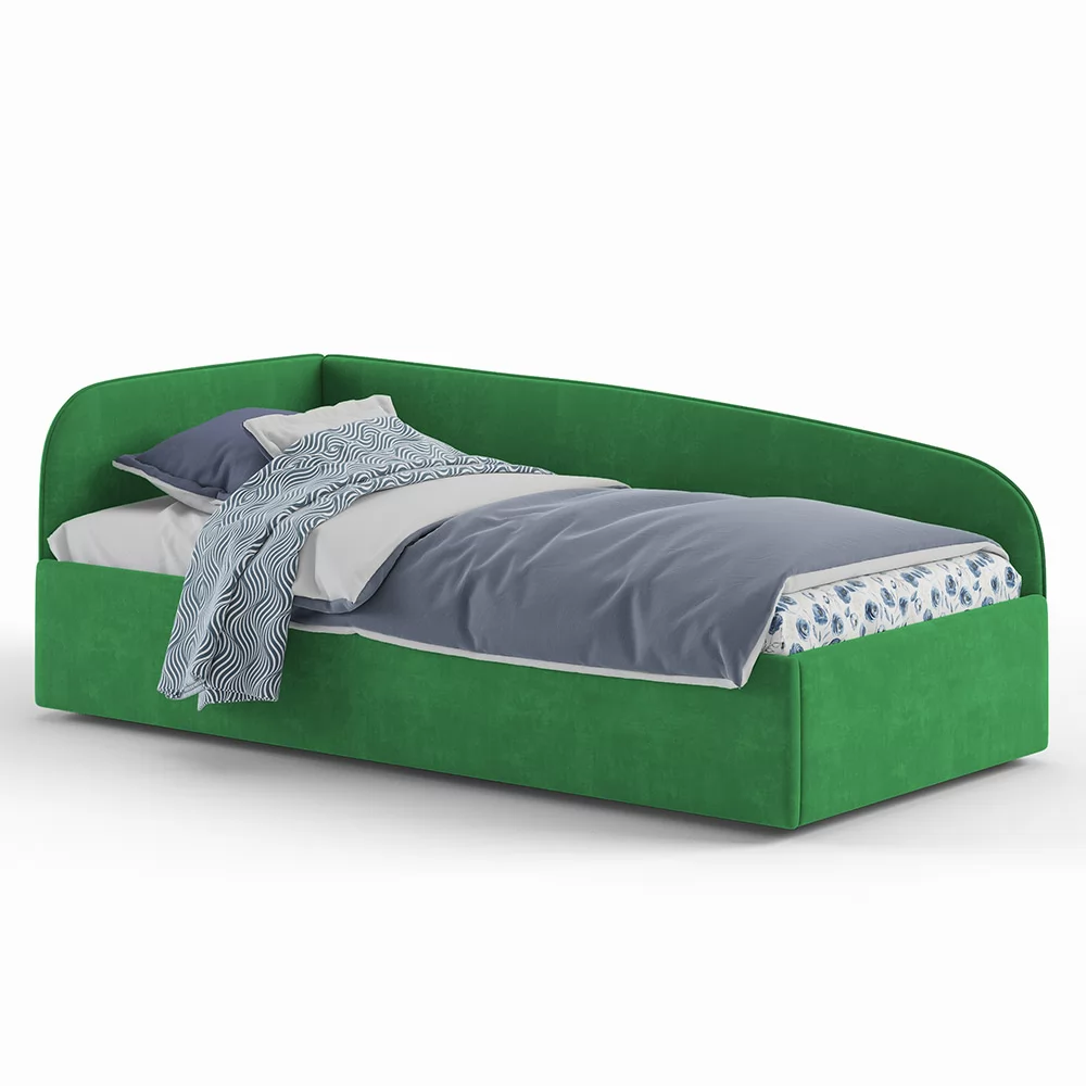 Кровать с универсальной малой спинкой, которую можно установить справа или слева. Обратите внимание, что кровать в базовой комплектации идет с логотипированной универсальной спинкой.