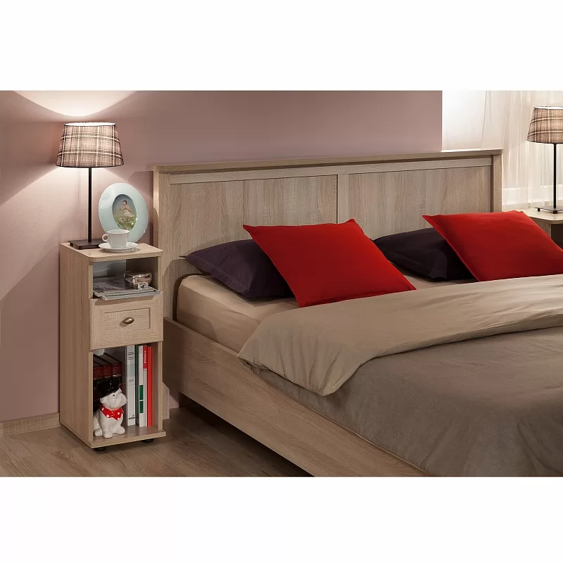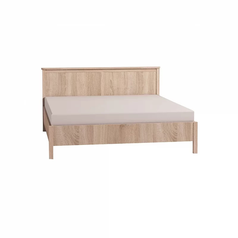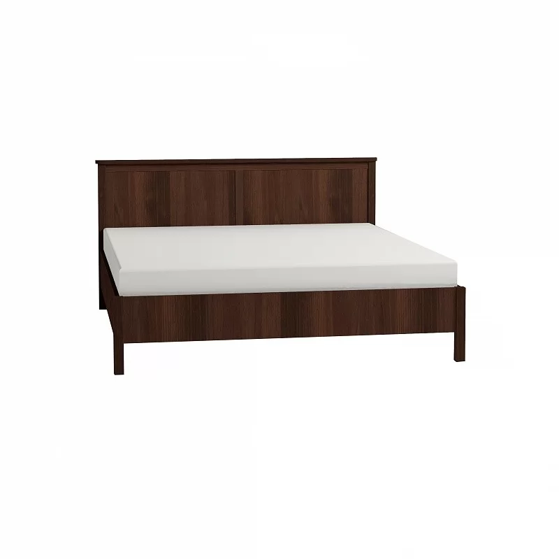Двуспальная кровать со стационарным ортопедическим основанием - самый важный предмет мебели в спальне. Рекомендуемая высота матраса - до 23 см. Он "утопает" в корпус кровати на 4,5 см. Верхняя фигурная планка на изголовье из толстой плиты ЛДСП шириной 7 см. Данная кровать рассчитана под стационарное ортопедическое основание с гибкими фанерными ламелями с корпусом из металла или дерева. Последнее стоит дешевле, экологично и выдерживает бОльшую нагрузку по сравнению с металлическим (440 кг распределенной нагрузки с учетом веса матраса против 300 кг).