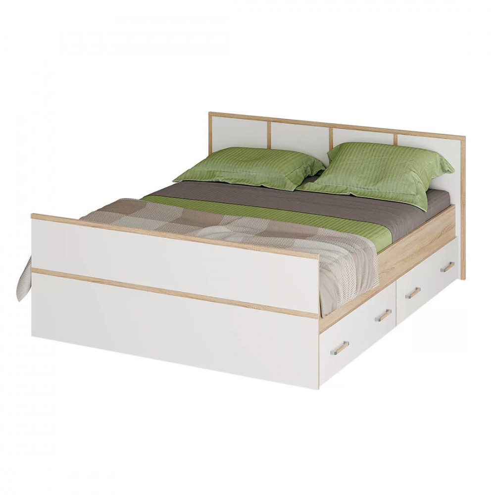 Двуспальная кровать Сакура выполнена из ЛДСП высокого качества в контрастных цветах сонома и белый.