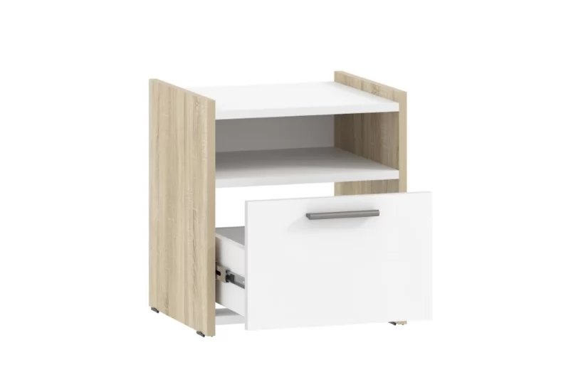 Прикроватная тумба Симпл выполненая в Скандинавском стиле станет небольшим, но надежным дополнением интерьера. Верх тумбы может быть применен в качестве журнального или ночного столика, на котором удобно разместить книгу и стакан воды.