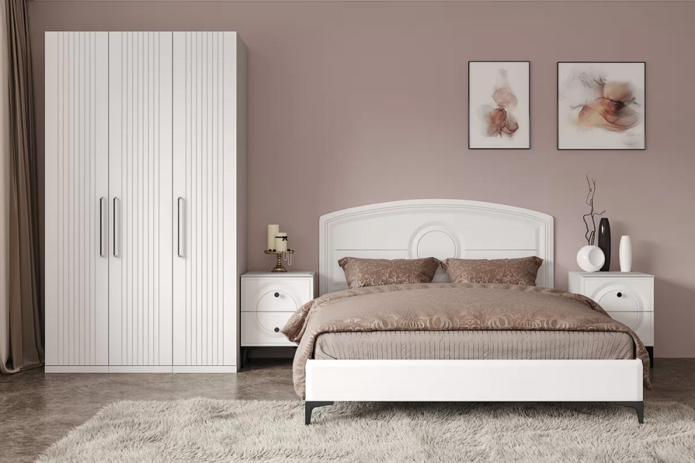 • Фасады выполнены из МДФ с матовой ПВХ-плёнкой. Такое решение делает мебель визуально более "мягкой", комфортной и расслабляющей, что особенно актуально для спальни.