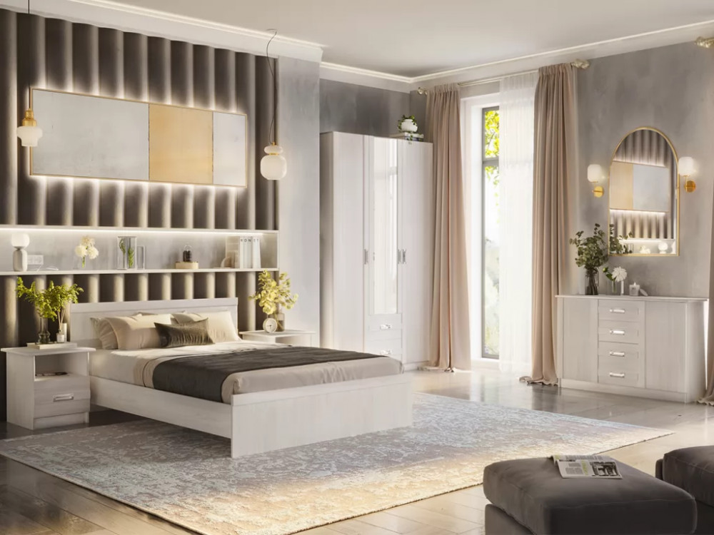 Спальный гарнитур Сабрина-2 Ясень анкор светлый в Пангоды