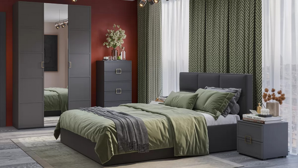 Спальный гарнитур «Стелла» №3 Серый вулкан, Фон серый, Велюр Графит в Пангоды
