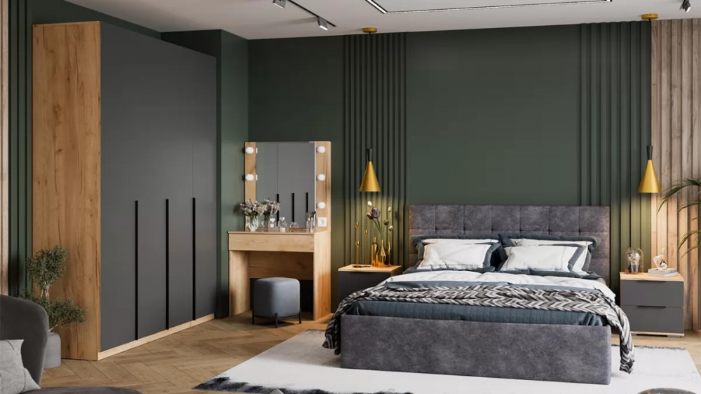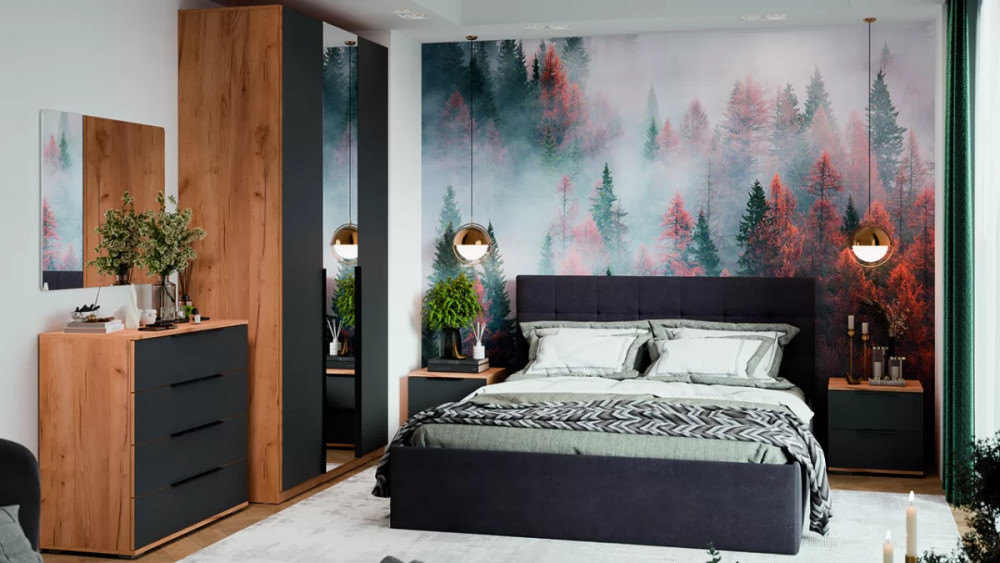Спальня «Джоли» Дуб Крафт золотой, Графит матовый в Пангоды