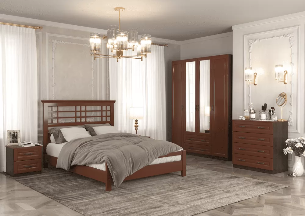• Кантри Орех Шкаф распашной с 2 зеркалами ШР-4