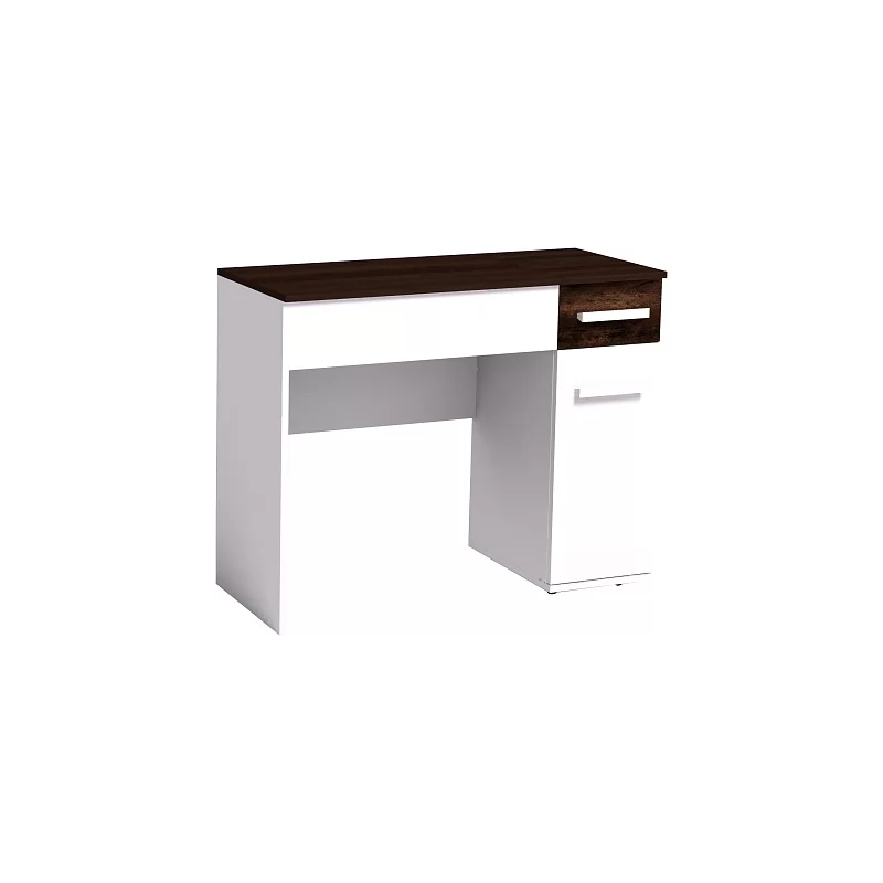 Простой с виду туалетный столик из коллекции Норвуд обладает интересной конструкцией. Откидная контрастная крышка стола скрывает нишу с органайзером для хранения мелких аксессуаров. На внутренней стороне крышки - зеркало, перед которым удобно наносить макияж и проводить косметические процедуры. Сбоку – отделение с полками за распашной дверцей и выдвижным ящиком, фасад которого выполнен из брашированного дерева цвета Орех шоколадный. Столик в закрытом состоянии можно использовать для работы на компьютере или с документами. Модуль можно собирать как на левую, так и на правую сторону.