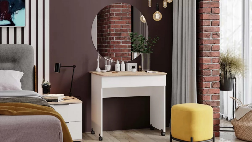 Стол с зеркалом «Diamond» тип 2 Дуб Сонома, Белый Ясень в Пангоды
