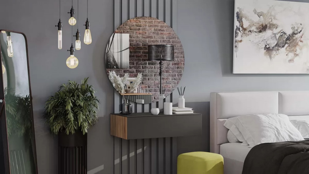 Стол туалетный Глосс Яблоня Беллуно, Стекло Графит матовый в Пангоды