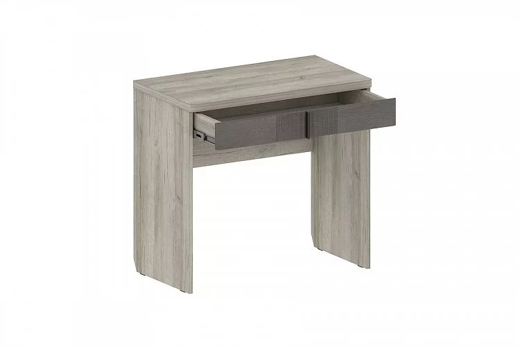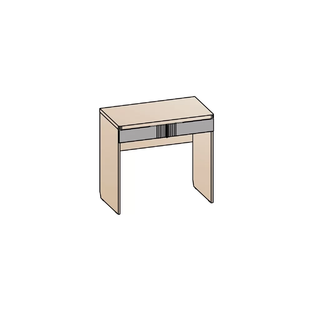 Фасады представлены как в однотонном так и в комбинированном варианте: створки из МДФ 16 мм под пленкой ПВХ. В туалетном столике выдвижные ящики укомплектованы направляющими полного выдвижения. Дно ящика и задняя стенка выполнены из ХДФ, которое вставляется в паз. Фрезерованные крышки из ЛДСП 32 мм облицованы кромкой ПВХ толщиной 1 и 2 мм. Зеркало в овальной форме для туалетного столика комплектуется отдельно.